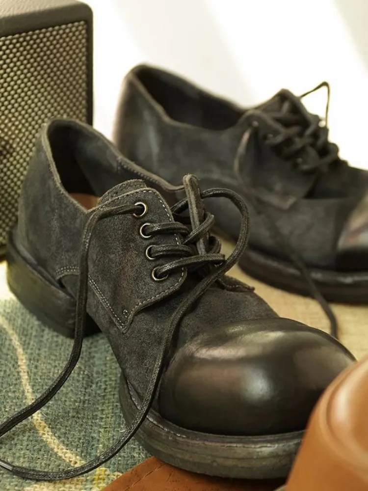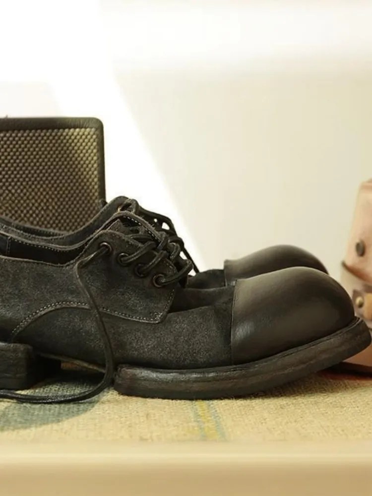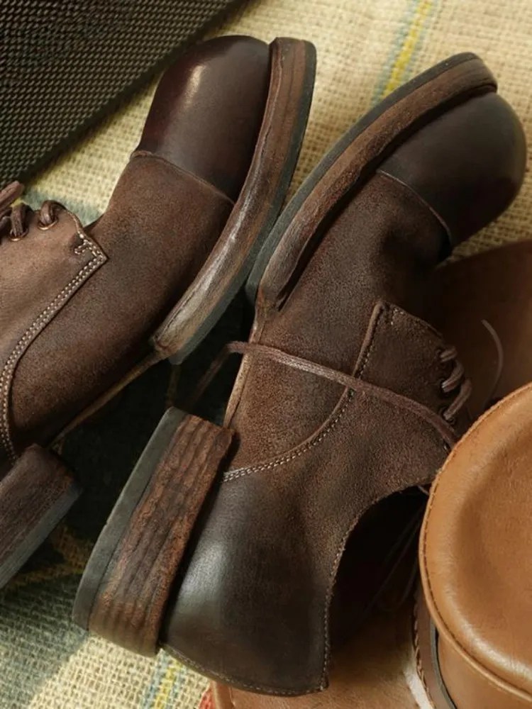 horsehide leather sneakers men, handmade round toe casual shoes, mid heel men’s fashion shoes, platform retro sneakers, breathable men’s lace-up shoes, RetroStep™ horsehide shoes, genuine leather men’s footwear