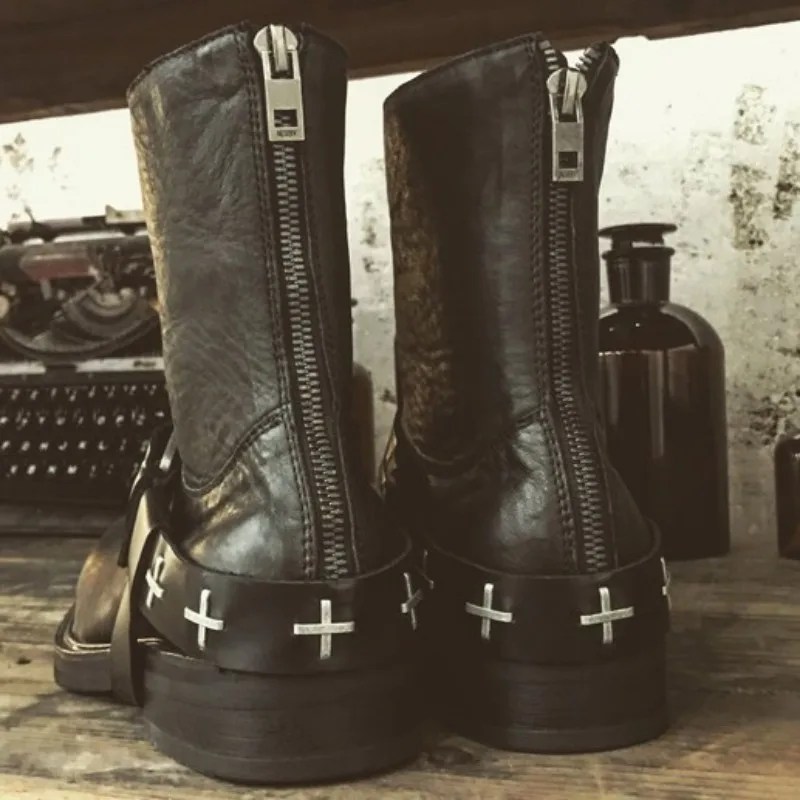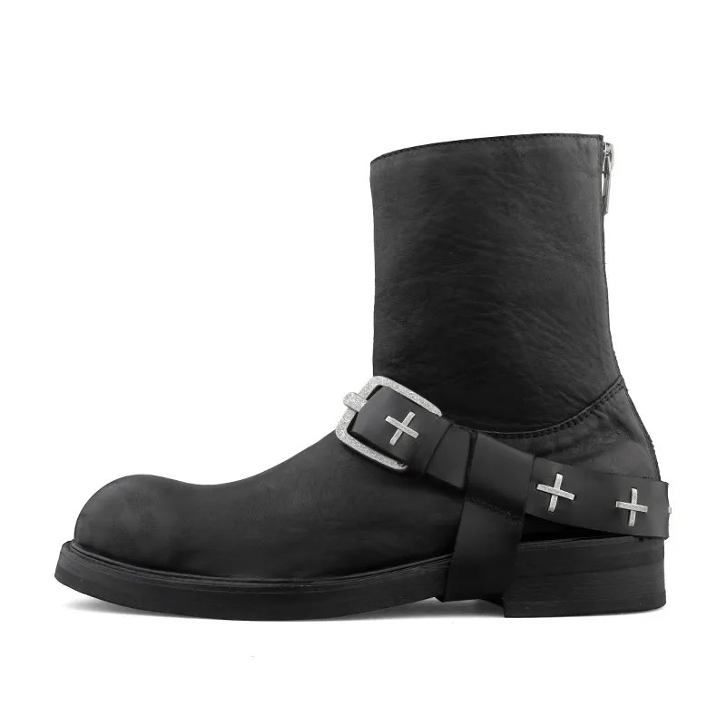 horsehide punk boots men, platform leather ankle boots, handmade punk street boots, men height increase punk shoes, UNITYPUREMAX leather boots, buckle zipper horsehide boots, gothic alt style boots men, lift platform leather ankle boots