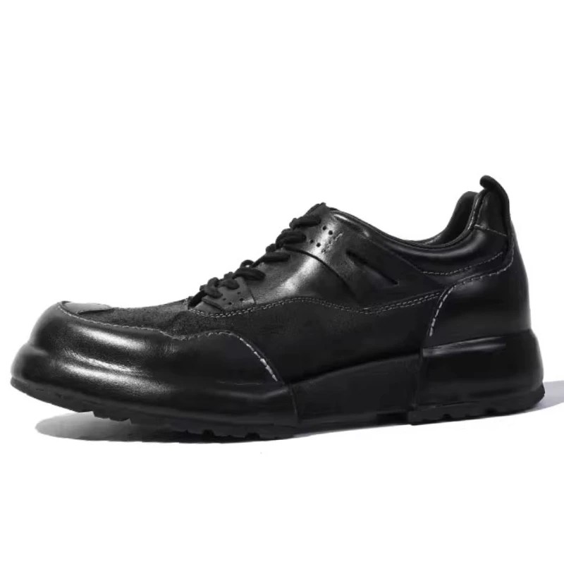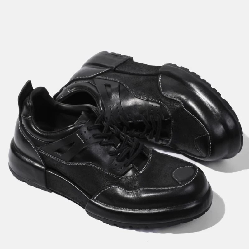 UNITYPUREMAX™ Italian Handmade Retro Leather Sneakers – Genuine Cowhide & Horsehide Thick-Soled Men’s Shoes