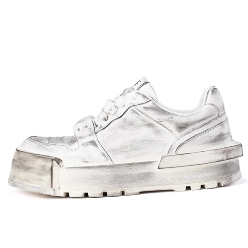 distressed sneakers men, old dirty shoes, retro platform sneakers, genuine leather casual shoes, height increasing streetwear sneakers, UNITYPUREMAX sneakers