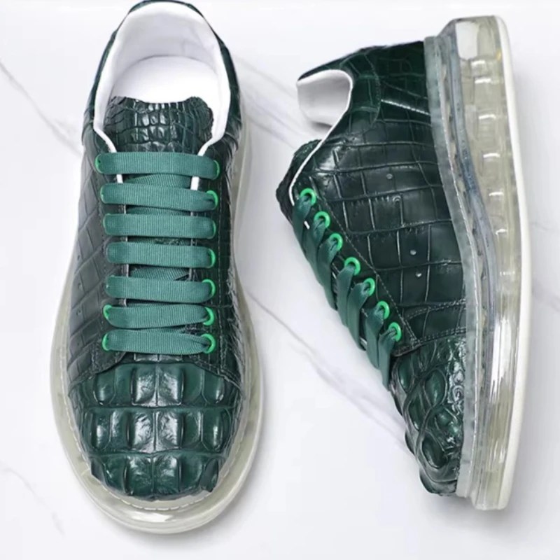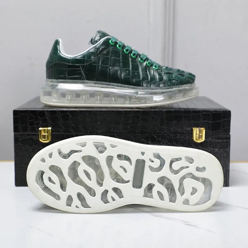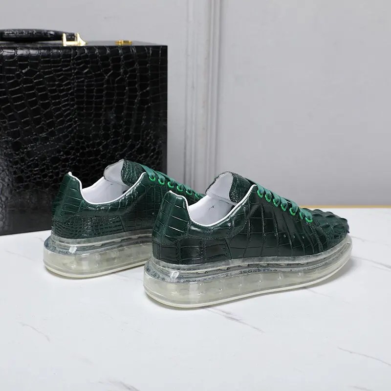 Green Crocodile Leather Shoes Men – Height Increasing Luxury Casual Sneakers | UNITYPUREMAX™