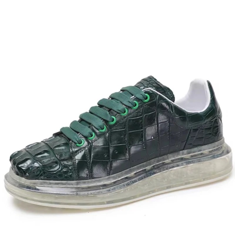 green crocodile leather shoes men, crocodile embossed sneakers, luxury casual leather shoes, height increasing shoes men, thick sole sneakers men, genuine leather sports shoes, breathable leather sneakers