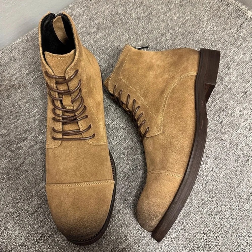 Handmade Leather Lace-Up ZIP Desert Boots for Men | UNITYPUREMAX™ Retro Cowhide Motorcycle Boots