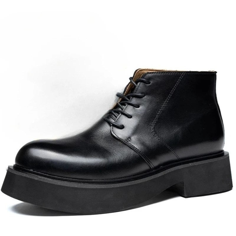 British Design Fashion Genuine Leather Platform High Top Shoes for Men Casual Motorcycle Work Shoes | UNITYPUREMAX™