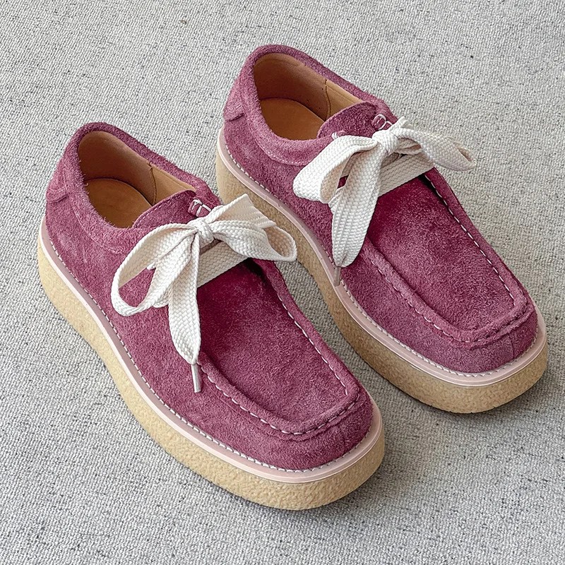 Discover the Thick-Soled Luxurious Suede Derby Sneakers – unisex lace-up flats blending Derby elegance with sneaker comfort. Handmade from split suede leather with a thick rubber sole for casual spring/autumn wear. “Not sure which size fits? Use this shoe size conversion calculator for accurate international conversions.”