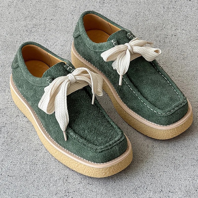 Suede Derby Sneakers, Unisex Casual Shoes, Thick Sole Lace-Up Flats, Handmade Suede Sneakers, Men’s & Women’s Derby Style Shoes, Luxury Suede Casual Shoes, Spring Autumn Casual Footwear