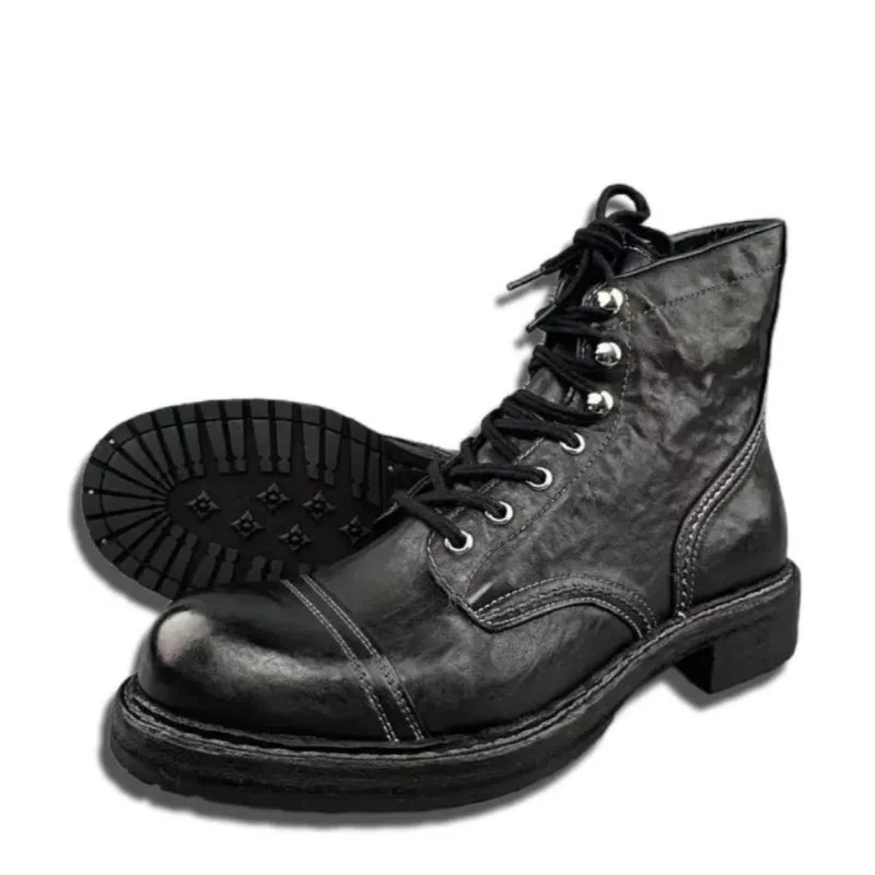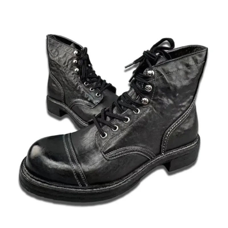 luxury leather work boots men, UNITYPUREMAX boots, handmade ankle boots, motorcycle leather boots men, vintage British style boots, anti-slip work boots, genuine leather men’s boots, outdoor wear-resistant boots