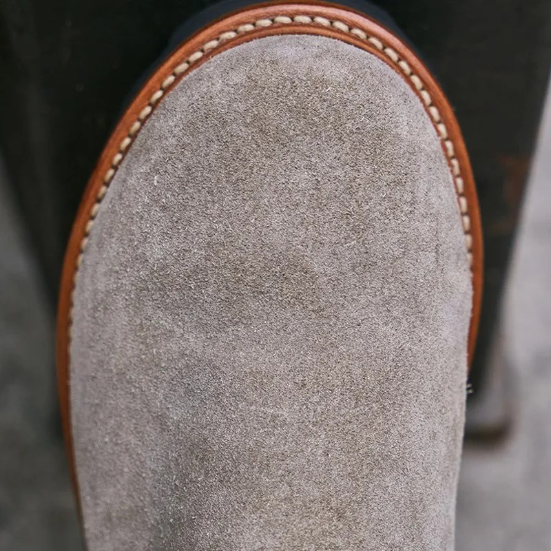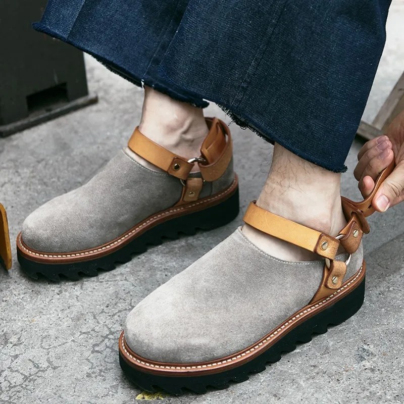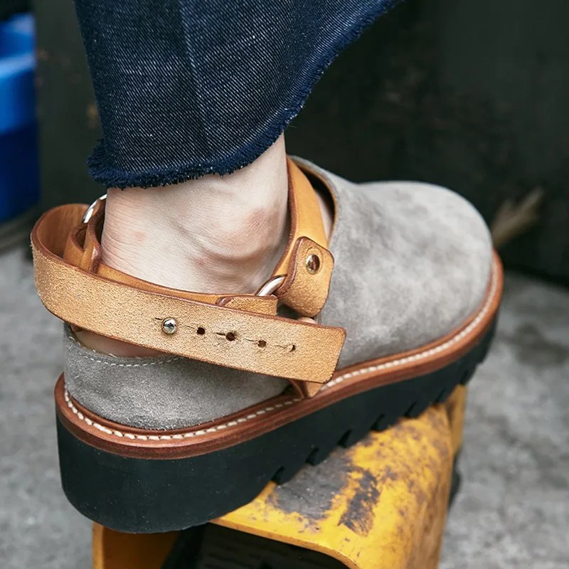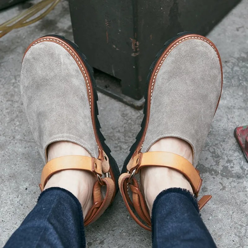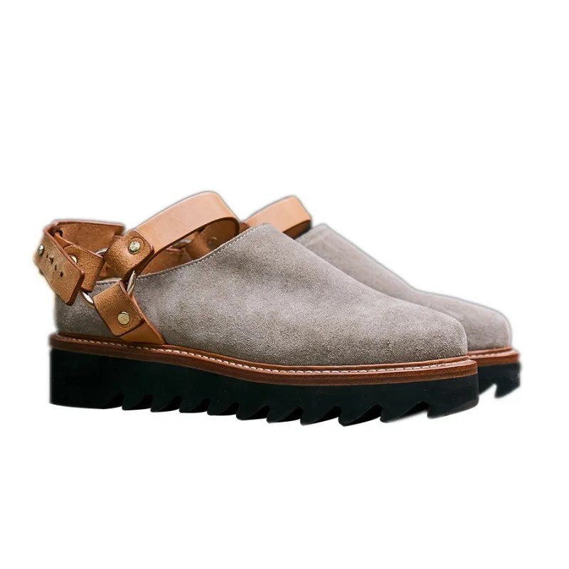 Handmade from premium cow suede and full-grain leather lining, every pair celebrates raw material beauty and comfort. A rounded toe, secure buckle strap, and signature thick rubber outsole complete the look — offering soft foot feel, supportive balance, and all-day walkability.