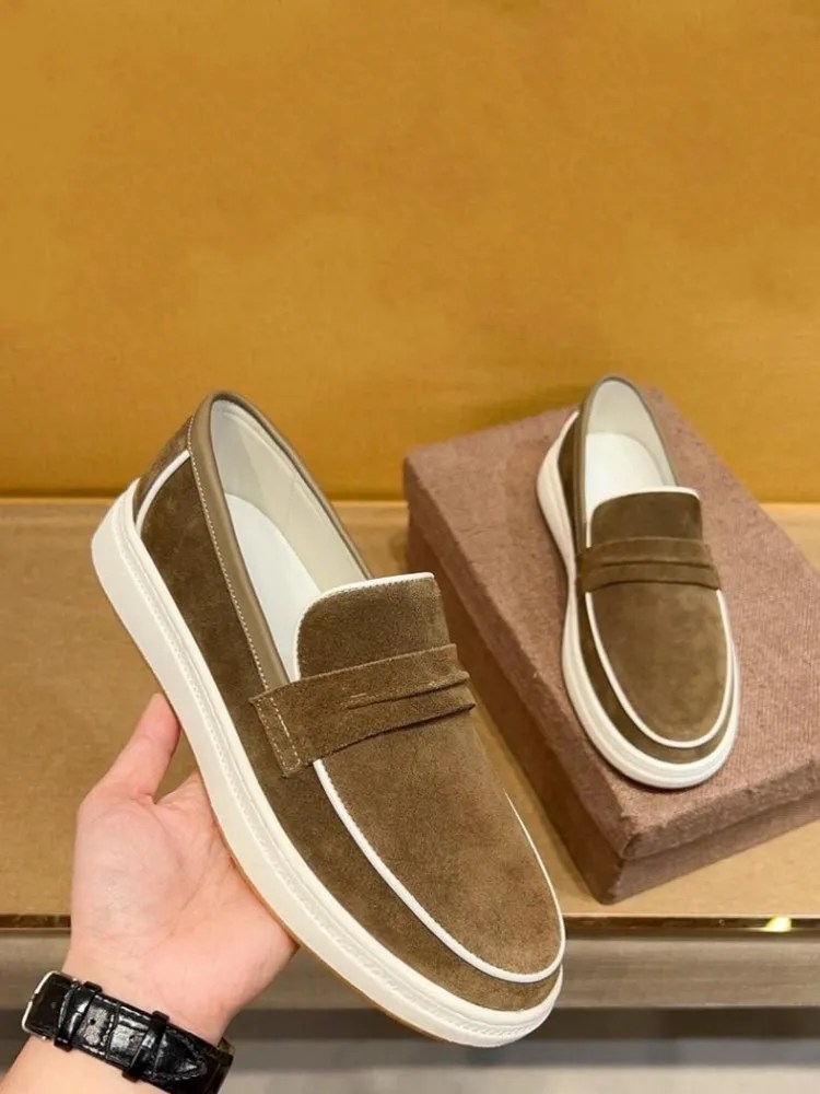 Premium cow suede slip-on loafers for men by UNITYPUREMAX™. Breathable, comfortable, and perfect for casual or workwear with genuine leather lining and flexible rubber sole.