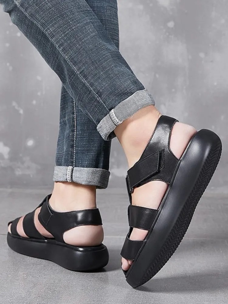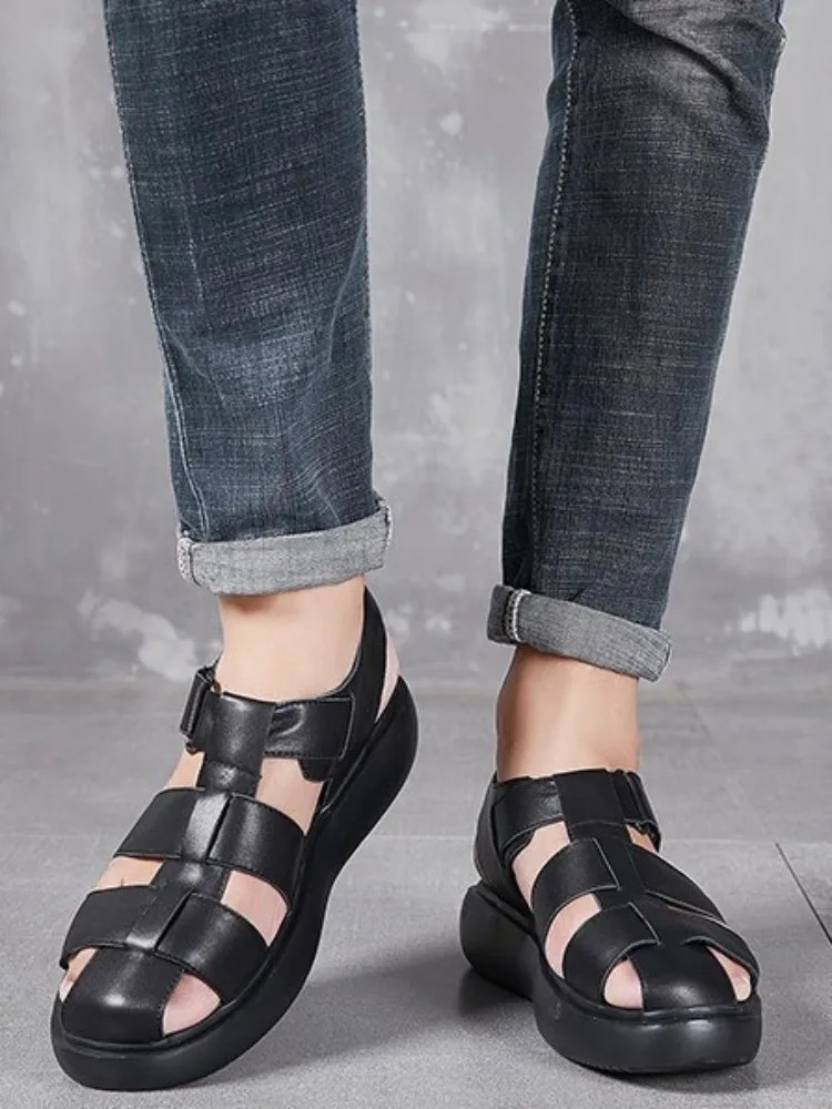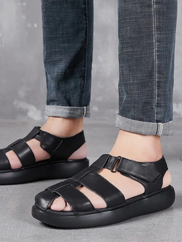 Men’s genuine cowhide closed-toe gladiator sandals by UNITYPUREMAX™. Breathable leather design with hook & loop closure, cushioned PU insole, and platform rubber sole for casual daily comfort.