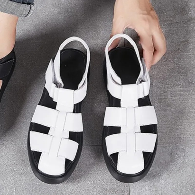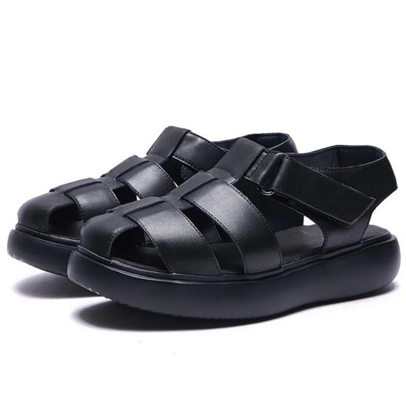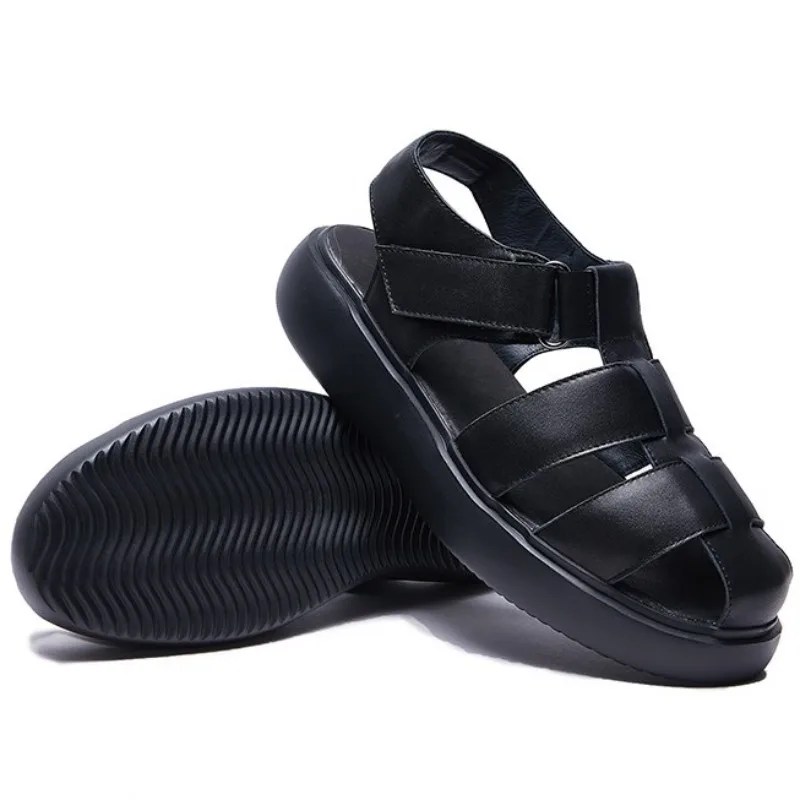 UNITYPUREMAX™ Men’s Cowhide Closed-Toe Gladiator Sandals | Platform Hook & Loop Leather Shoes