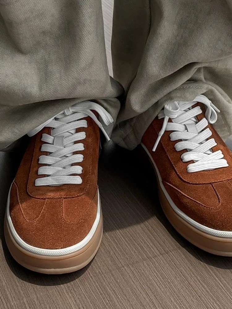 Men’s genuine cow leather height-increase casual shoes. Minimalist round-toe lace-up design with leather lining, cushioned comfort, and solid style.