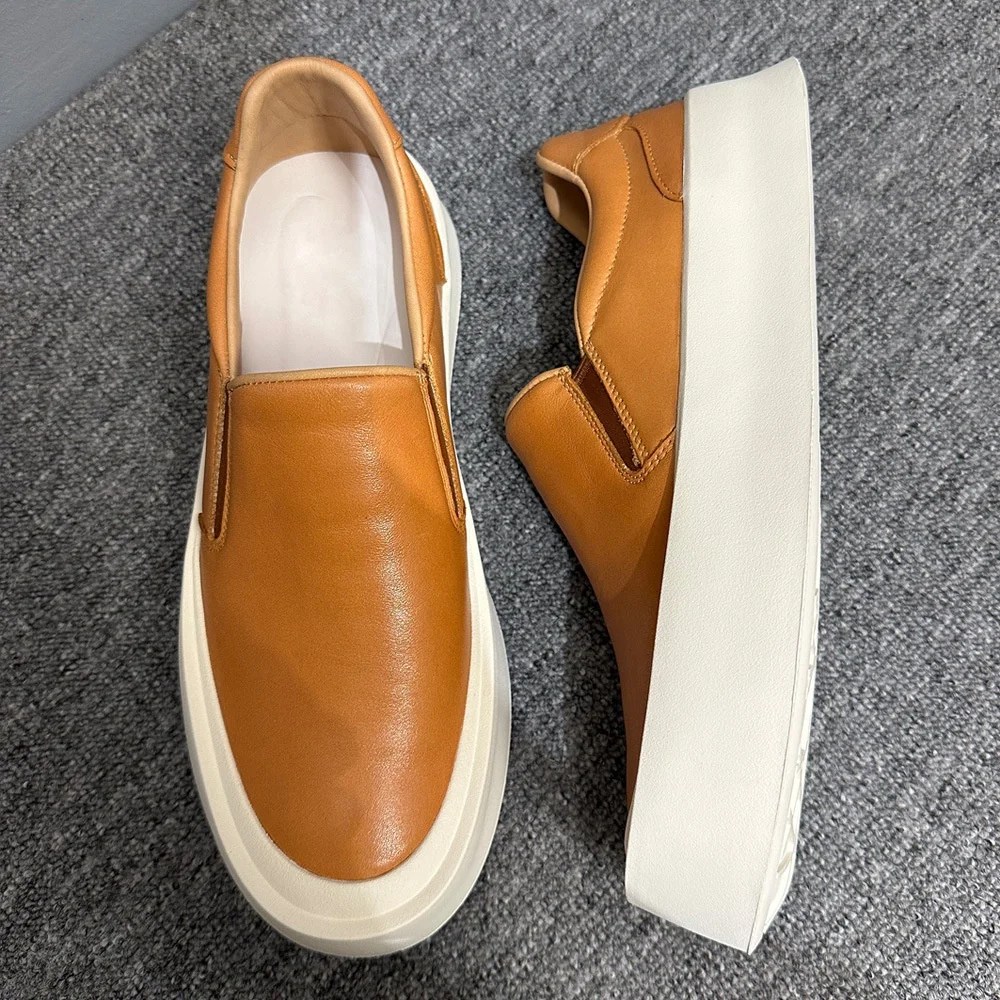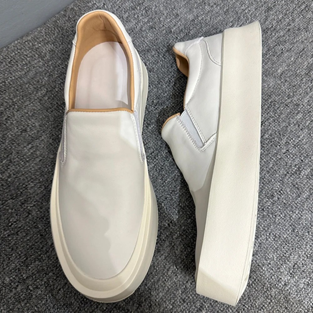 Crafted for refined everyday wear, these superior Cowhide Height-Increasing Loafers blend classic slip-on ease with a modern thick-sole, height-enhancing design. Made from genuine cow leather inside and out, they deliver breathable comfort, subtle elevation, and long-lasting durability. The patchwork detailing adds understated character, making these loafers a versatile choice for spring and autumn casual styling.