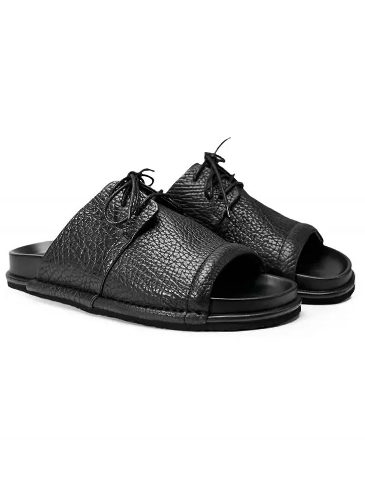 Men’s Genuine Leather Open Toe Sandals Summer Lace Up Roman Slides Beach Casual Shoes | UNITYPUREMAX™