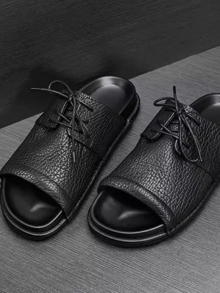 These slides are engineered for men who prioritize comfort without sacrificing design. The genuine leather construction ensures long-term wearability, while the open, breathable structure keeps your feet cool in high temperatures. The Roman-inspired lace-up detailing adds a distinctive edge, making these sandals more refined than standard slides. Ideal for beach outings, vacations, or everyday leisure.