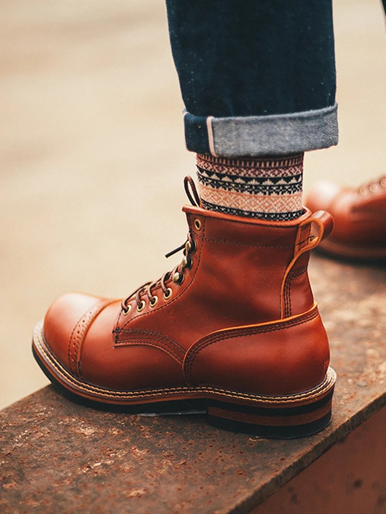 Q: Can these boots be worn in rainy or snowy conditions? A: While the rubber outsole provides good traction, we recommend applying a waterproofing treatment to protect the leather upper. With proper treatment, these boots can handle light rain and snow, though they’re not designed for extreme wet conditions.