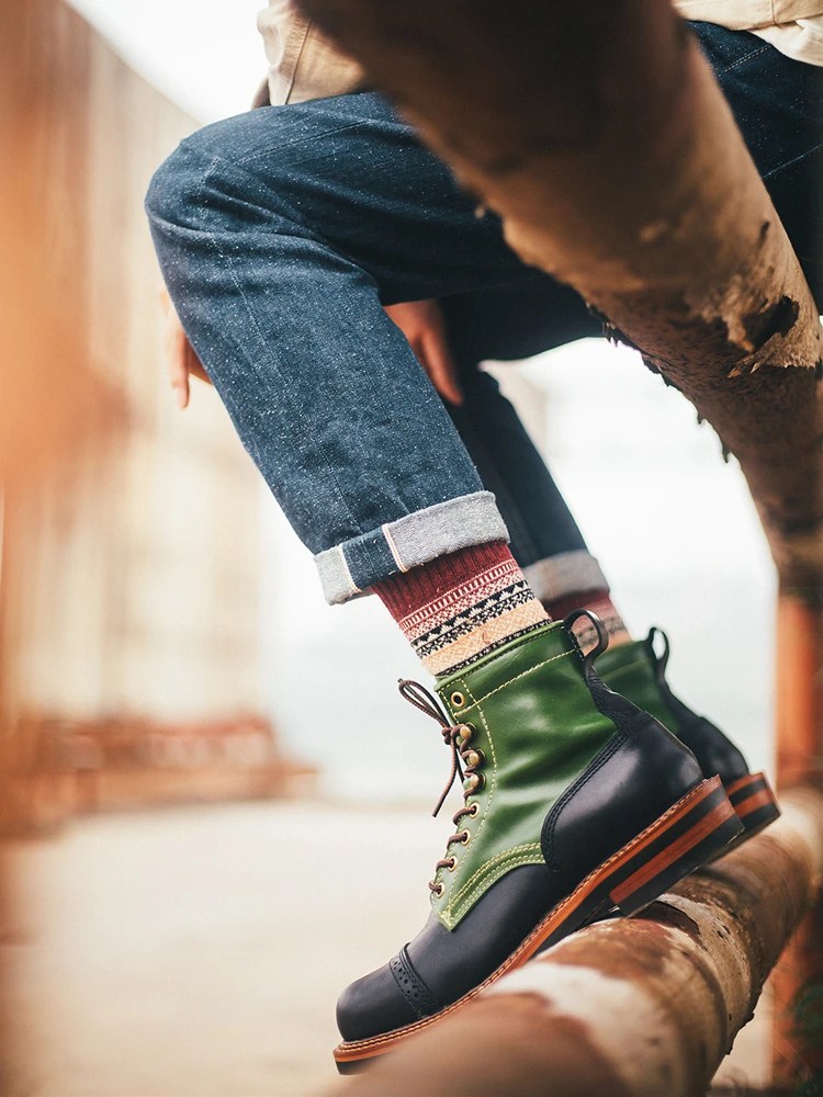 These tooling short boots feature authentic vintage styling with mixed-color patterns and precision sewing details that showcase superior craftsmanship. The round toe design provides ample room for all-day comfort, while the secure lace-up closure ensures a customizable, snug fit every time you wear them.