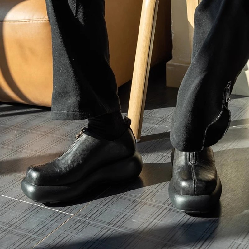 Men’s Derby Zipper Height Increasing Shoes – Genuine Leather Thick Sole Casual Sneakers | UNITYPUREMAX