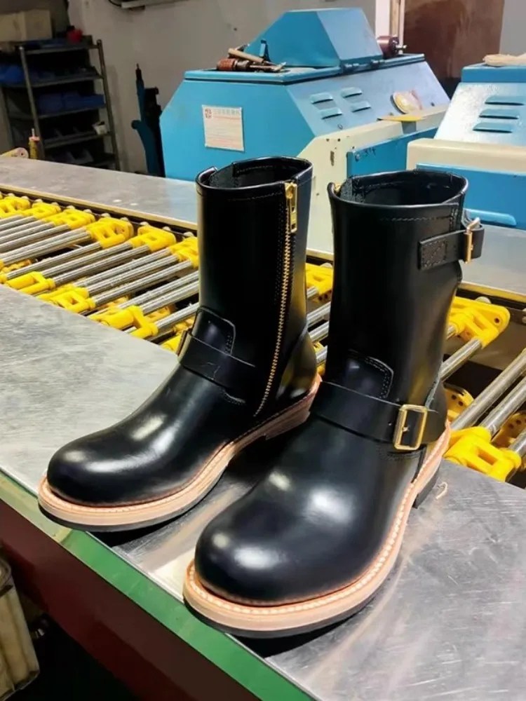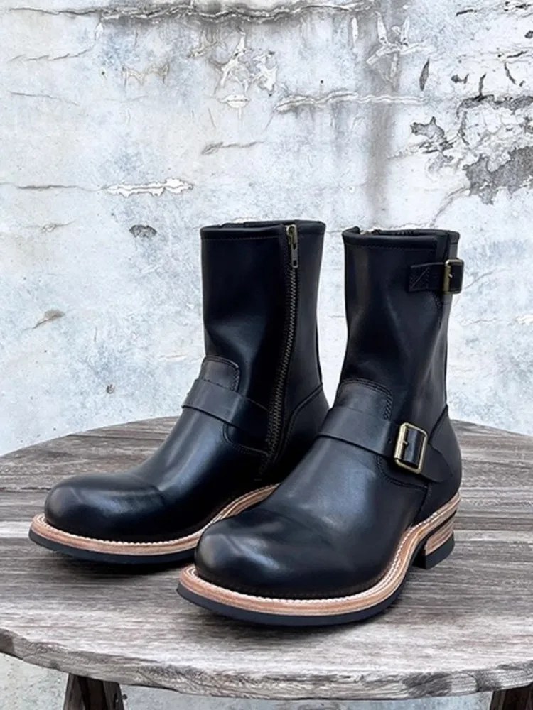 men leather motorcycle boots, cowhide motorcycle boots, vintage zipper boots men, mid calf leather boots men, retro motorcycle boots, designer leather biker boots, cargo style leather boots, handmade leather boots men, UNITYPURMAX boots