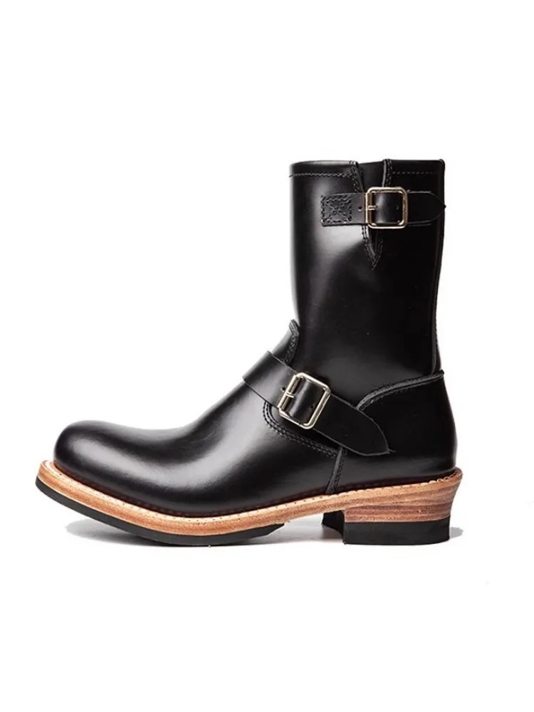 The UNITYPURMAX Cowskin Genuine Leather Cowhide Motorcycle Boots are designed for men who appreciate rugged construction paired with refined vintage style. Built from full-grain cowhide leather and finished with a functional side zipper and buckle detail, these mid-calf boots deliver both character and convenience.