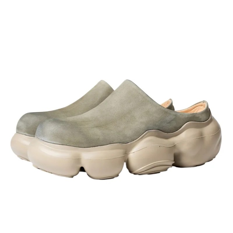 men’s leather slippers, leather clogs for men, height increasing slippers, genuine cowhide half slippers, UNITYPUREMAX slippers, British style slip-ons