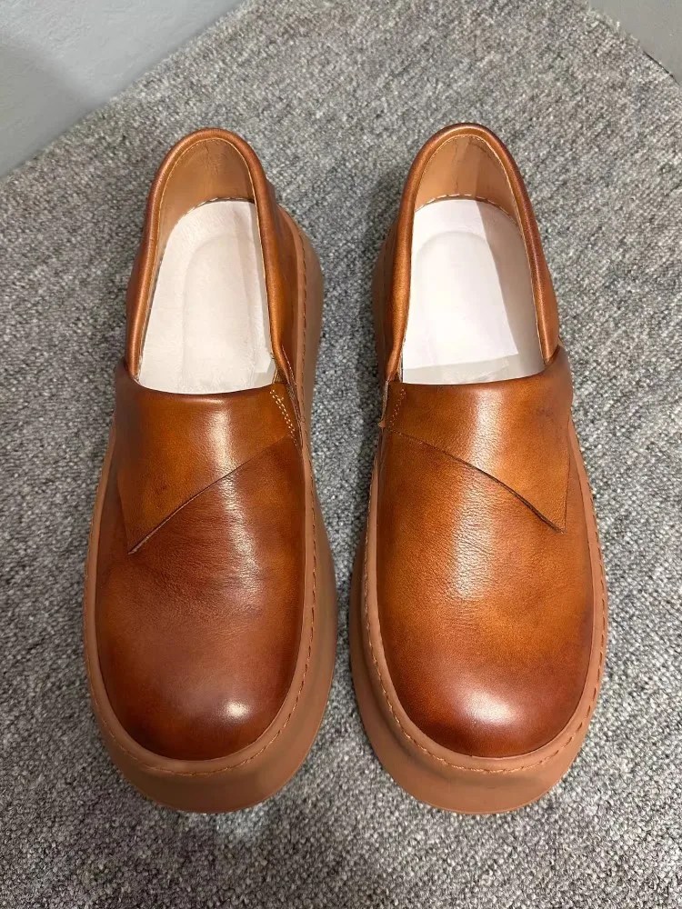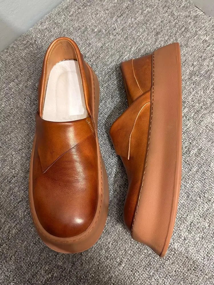 men’s leather slip-on loafers, vintage casual sneakers, breathable summer leather shoes, platform loafers for men, solid color dress-casual footwear