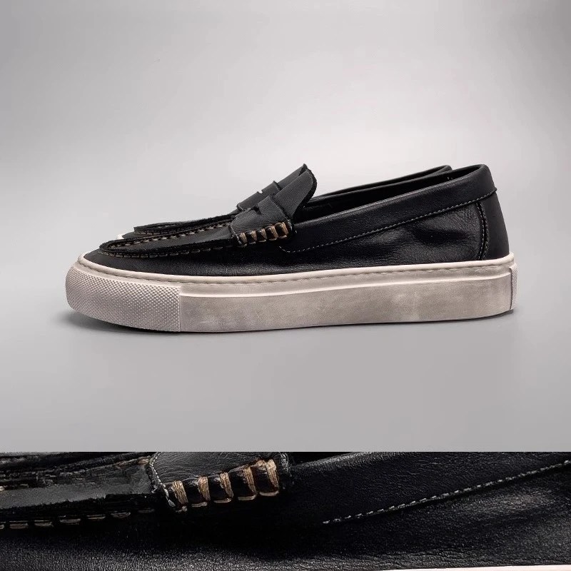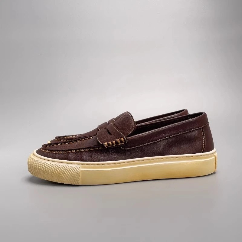 Lightweight, breathable, and crafted with heritage precision — the UNITYPUREMAX™ Handmade Retro Cowhide Loafers deliver a refined casual aesthetic inspired by classic British footwear. Made from premium cowhide leather with a soft genuine leather lining, these slip-on flats offer a natural feel that adapts to your movement. The rubber outsole provides flexible traction while the pigskin insole ensures cushioned comfort throughout the day. Designed for outdoor strolls, commuting, and relaxed daily wear, these loafers pair effortlessly with denim, chinos, or minimalist streetwear, making them a go-to staple for spring and autumn.