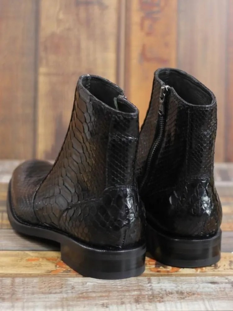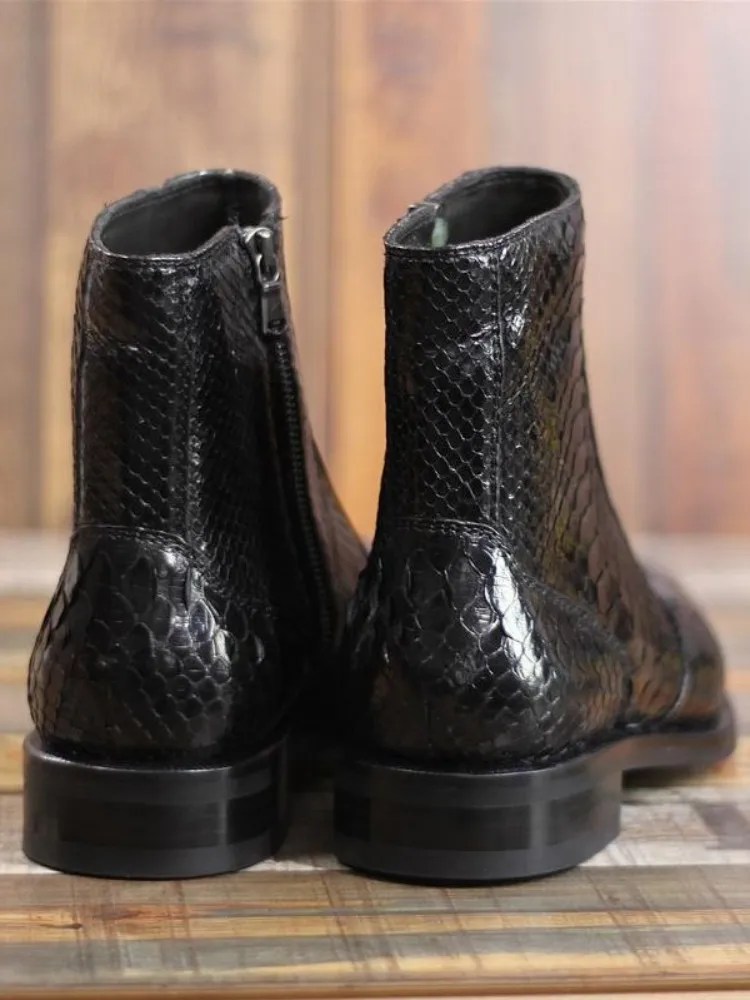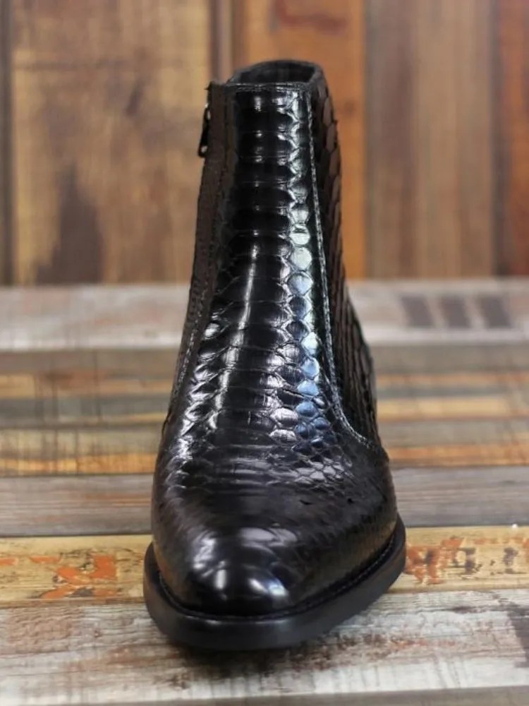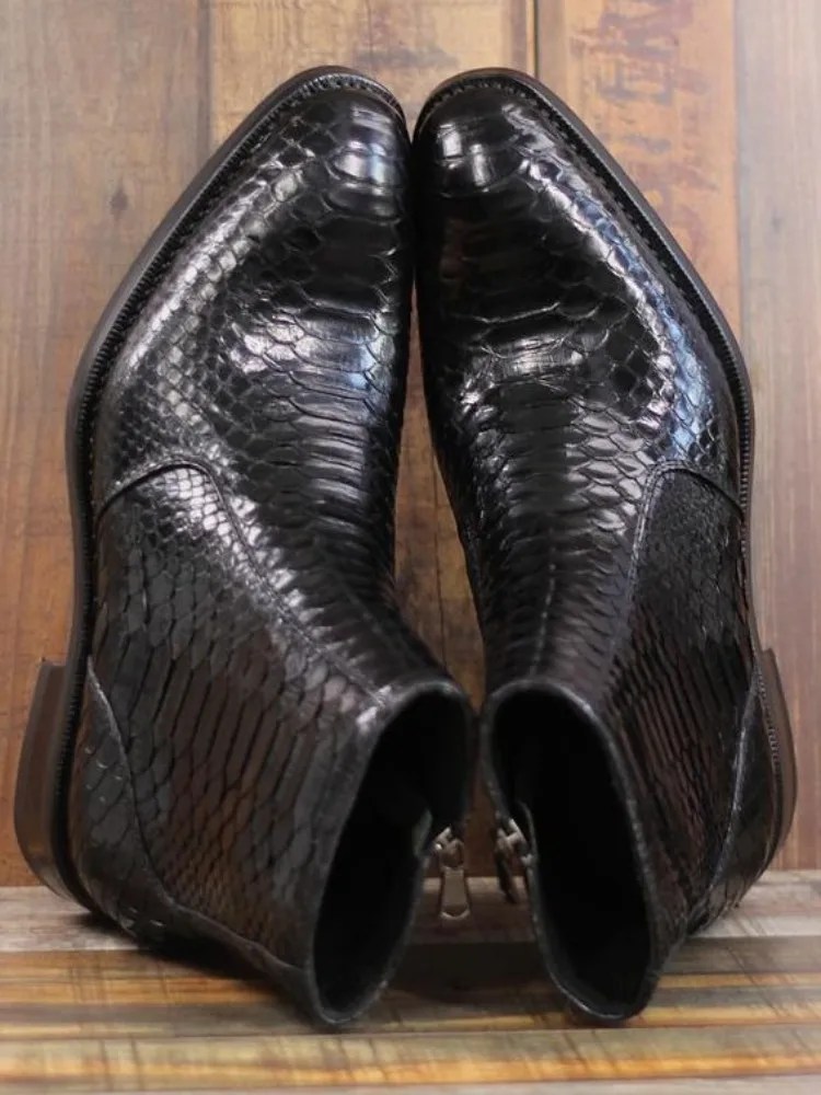 UNITYPUREMAX™ Men’s Handmade Snakeskin Leather Zip Boots | Pointed-Toe Ankle