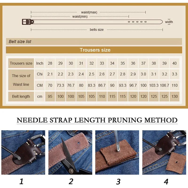 Select a size that is 10–15cm longer than your waist. For example, a 115cm belt fits a 100–105cm waist.