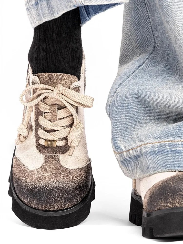 Step into bold versatility with the UNITYPUREMAX™ Designer Leather & Canvas Platform Casual Shoes. Handcrafted from a premium mix of cowhide genuine leather and durable canvas, these shoes combine refined craftsmanship with modern street-inspired design. The round toe and lace-up closure deliver a timeless silhouette, while the thick platform sole offers comfort, durability, and a discreet height boost. Perfect for office wear, casual outings, or stylish everyday use, this pair strikes the balance between function and fashion.