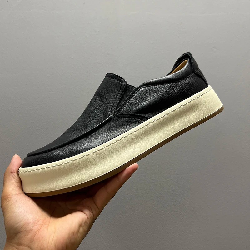 men’s leather slip-on sneakers, luxury cowhide sport shoes, casual leather flats men, UNITYPUREMAX sneakers, full grain leather casual shoes, breathable leather loafers men, minimalist streetwear shoes