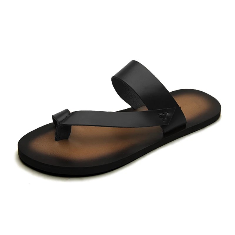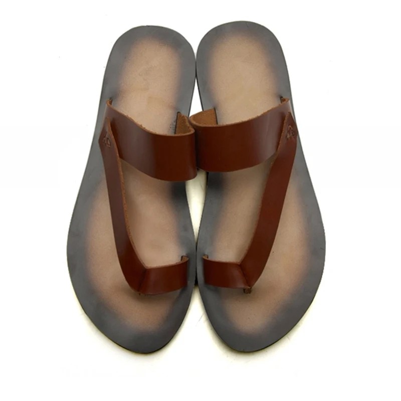Originality™ Men’s Real Leather T-Strap Flip-Flops – Summer Slides with Back Strap for Outdoor Casual Wear