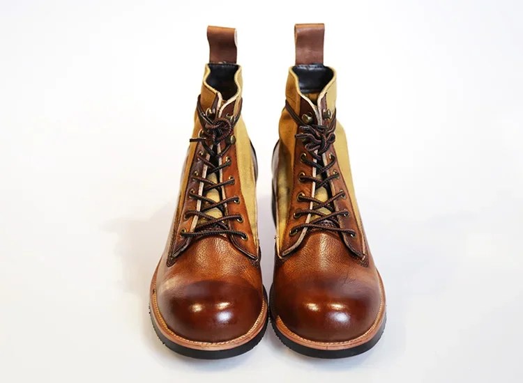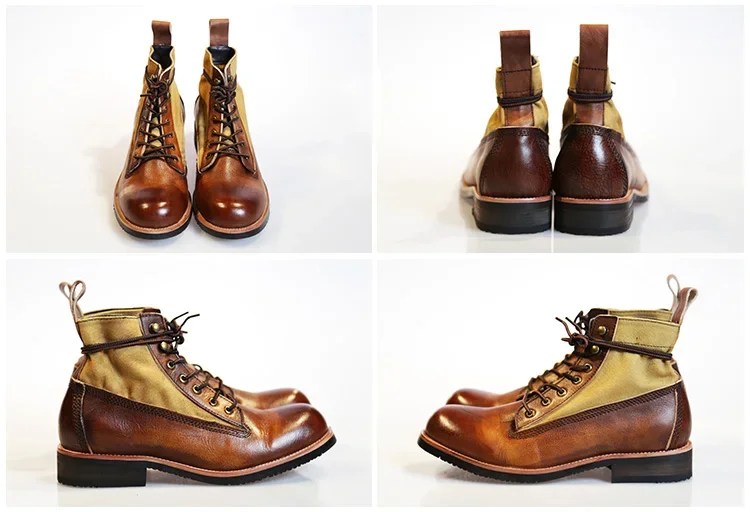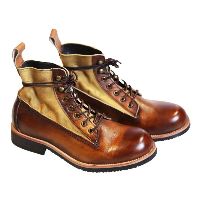 Men’s Retro Canvas Motorcycle Boots – Handmade Leather High-Top Ankle Boots | UNITYPUREMAX