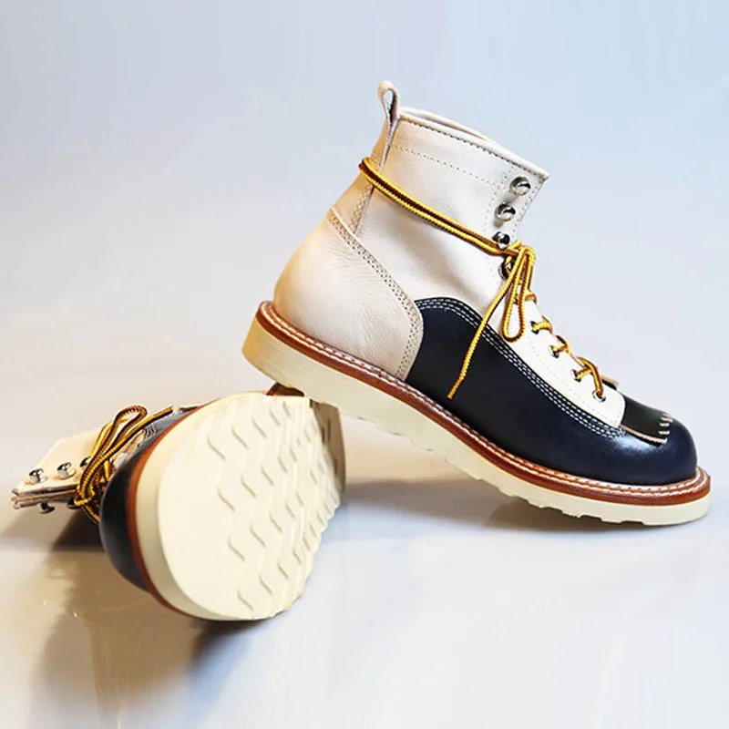 • Handmade full-grain cowhide boots with Japanese retro patchwork stitching