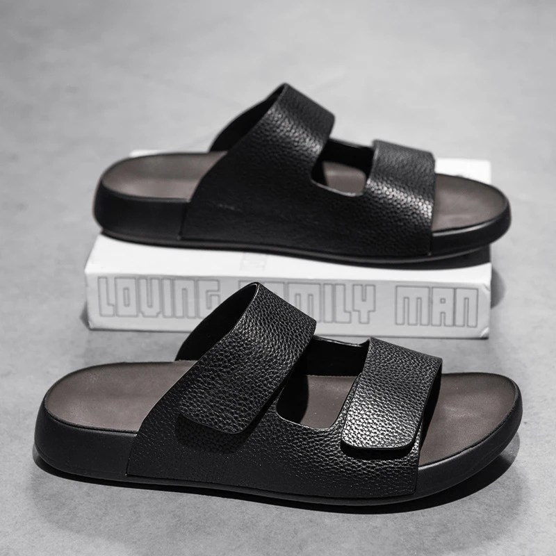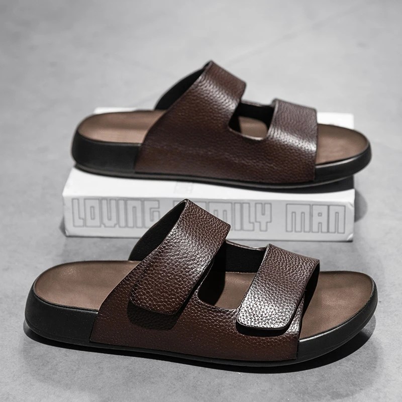 PureStep™ Men’s Cowhide Leather Summer Slippers – Non-Slip Outdoor Sandals