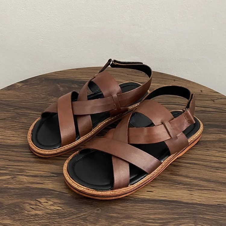 mens cowhide gladiator sandals, vintage leather beach sandals, UNITYPUREMAX summer footwear, cross strap open toe sandals men, handmade leather sandals, casual summer flats men, genuine leather gladiator shoes