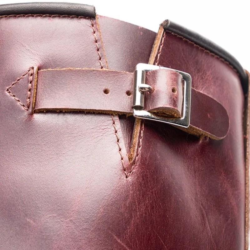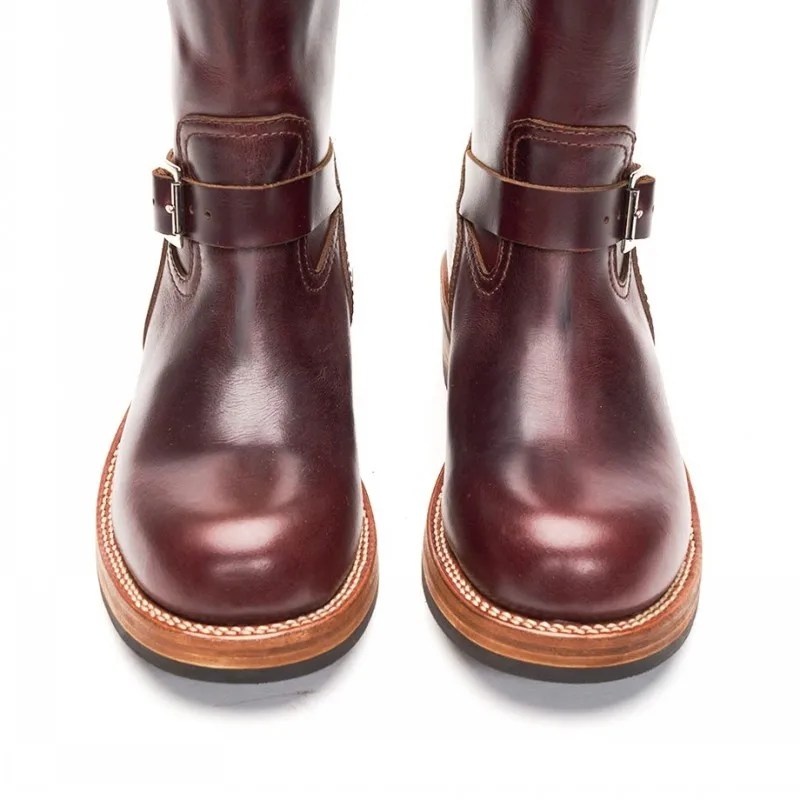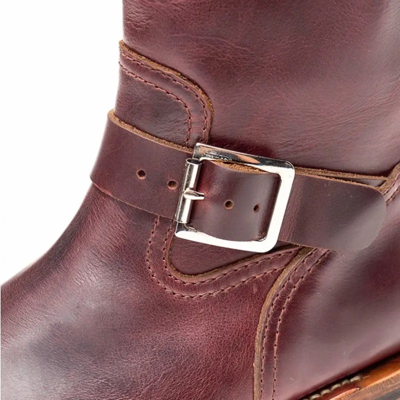 Premium full-grain cow leather offers durability, natural texture, and long-lasting character.Vintage Engineer & Motorcycle Design