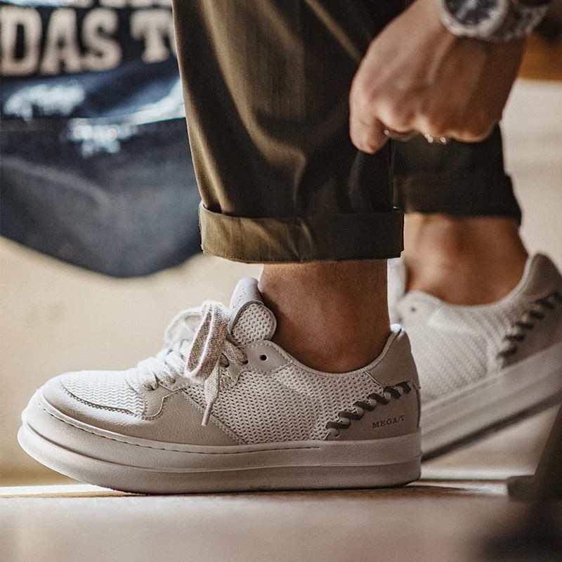 Dominate the streets this season with the Velocity™ ’95 Patchwork Chunky Sneakers. Designed for the modern man, these low-top shoes feature a striking patchwork design on a crisp white base, offering a bold architectural look that stands out. Engineered with advanced breathability, they are the ultimate summer shoe. The robust chunky rubber sole provides reliable traction and a modern silhouette, while the interior features a mesh-cushioned insole for unparalleled comfort during long summer days.