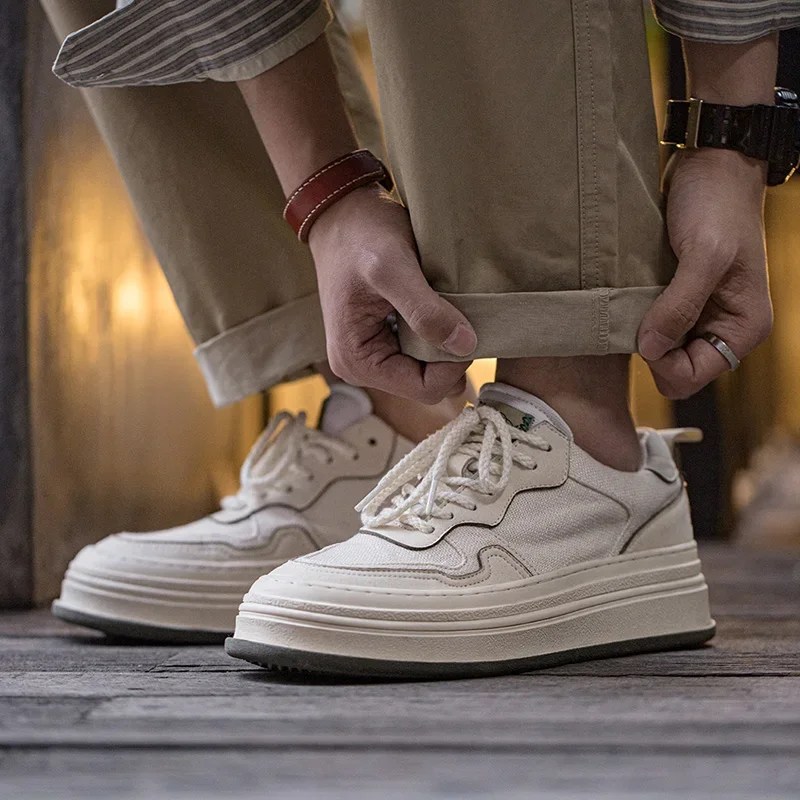 These sneakers combine retro skateboard aesthetics with everyday practicality. The thick sole absorbs impact while maintaining a clean profile, making them ideal for casual outfits without looking bulky. Lightweight, breathable, and easy to style, they pair seamlessly with jeans, cargos, or relaxed tailoring—perfect for men who value comfort without compromising style.