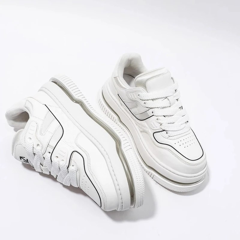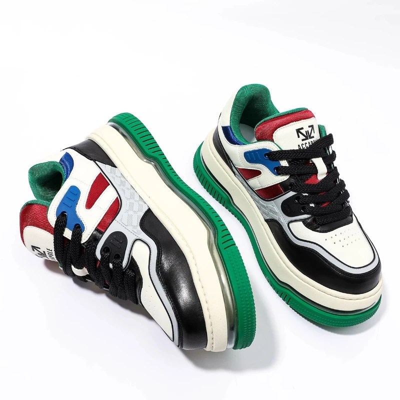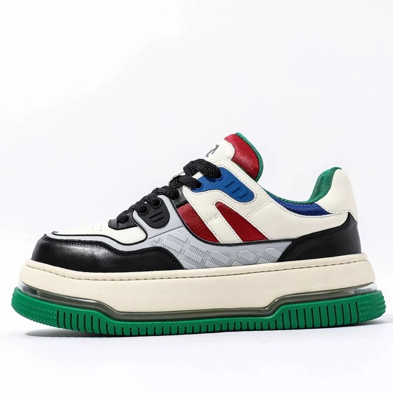 Built on a thick, shock-absorbing rubber sole, these shoes offer a subtle height increase and firm arch support — perfect for everyday wear. Whether styled with jeans or joggers, their modern color-block design (available in White and White-Green-Black) delivers the bold, effortless look every man needs this season.