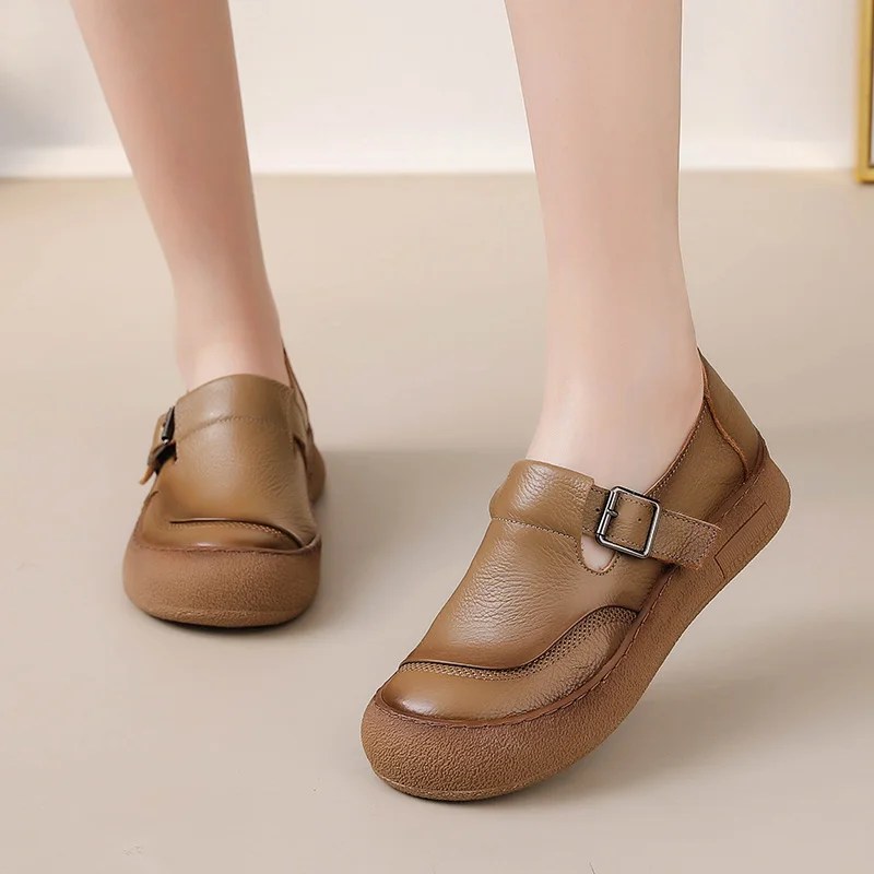 Original Natural Leather Women Flats – Vintage Comfort Loafers