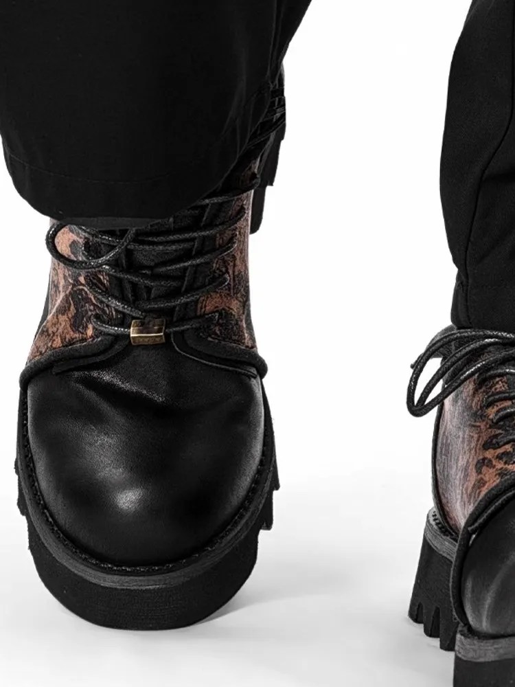 Premium Cowhide Leather Upper with silk patchwork for a luxury designer finish.