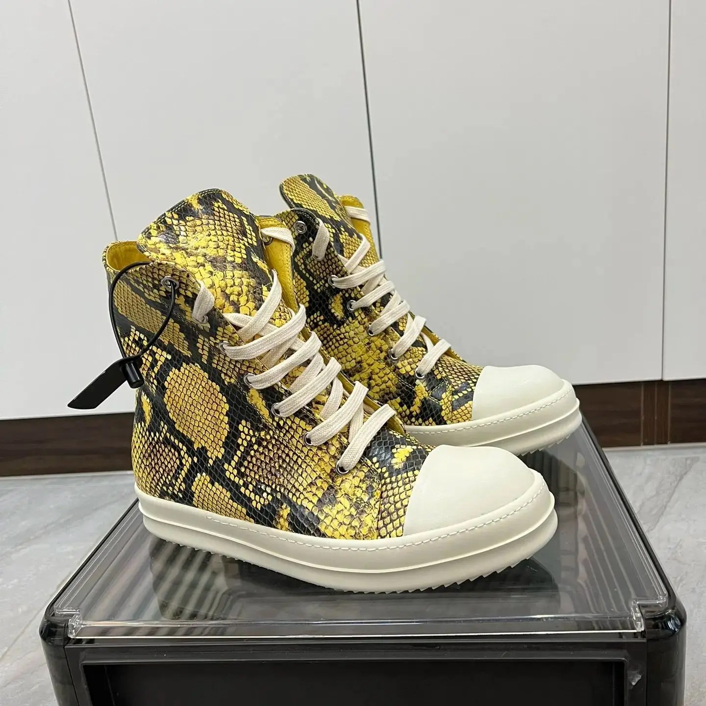 Yellow Python Pattern Leather High-Top Sneakers Unisex | UNITYPUREMAX™