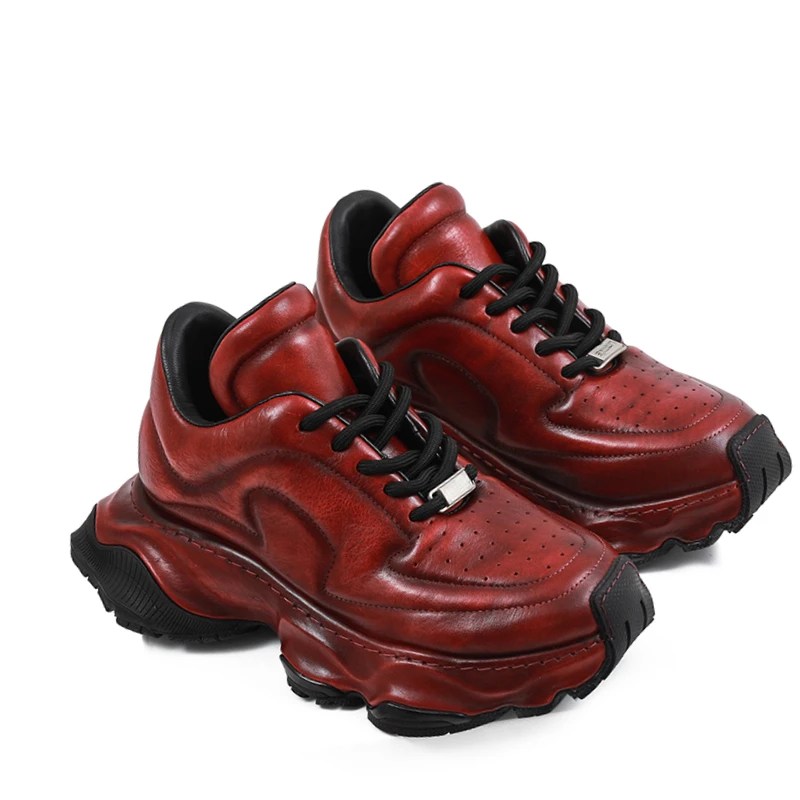 retro daddy shoes men, genuine leather sneakers, height increasing shoes, red platform shoes, UNITYPUREMAX casual leather shoes