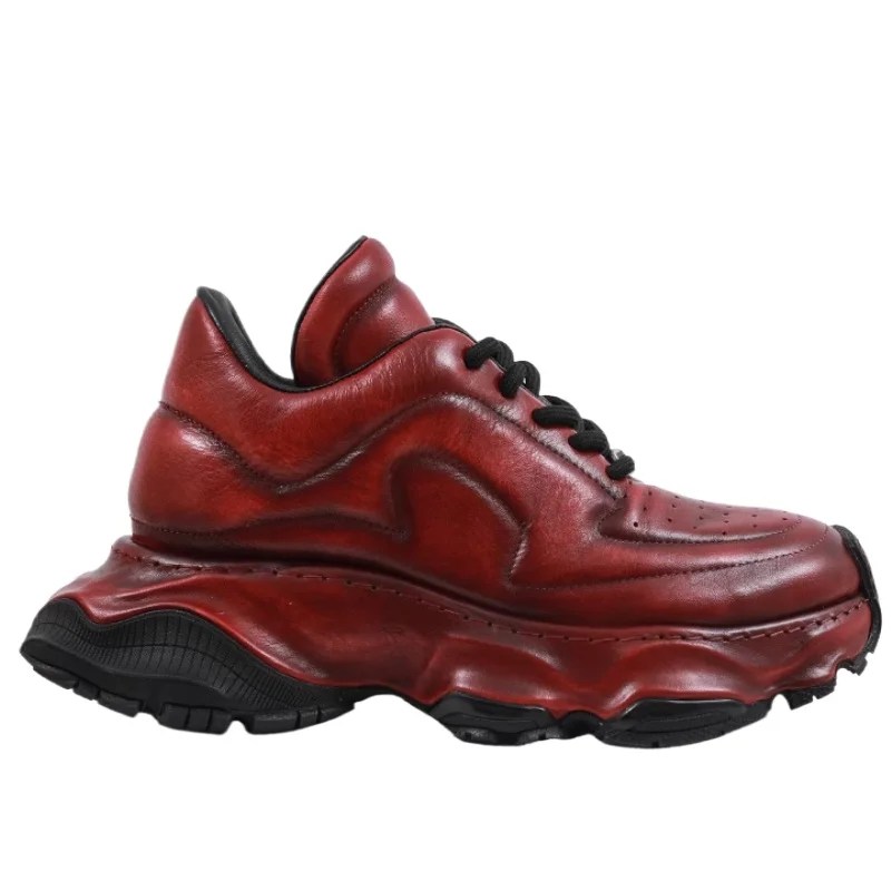 Step into bold comfort with UNITYPUREMAX Red Retro Daddy Shoes. Handmade from genuine cow leather, featuring breathable lining, thick sole, and 3–5cm height boost—perfect for casual or streetwear looks.