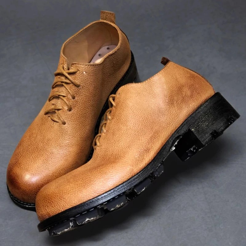 Vintage Polished Genuine Leather Men’s Thick Bottom Casual Workwear Shoes
