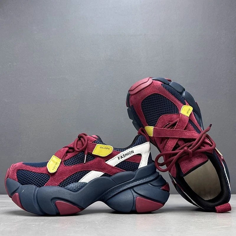 European/American Aesthetic: Retro “Daddy shoe” silhouette with gun black or purple-red-blue color contrast for bold streetwear appeal.