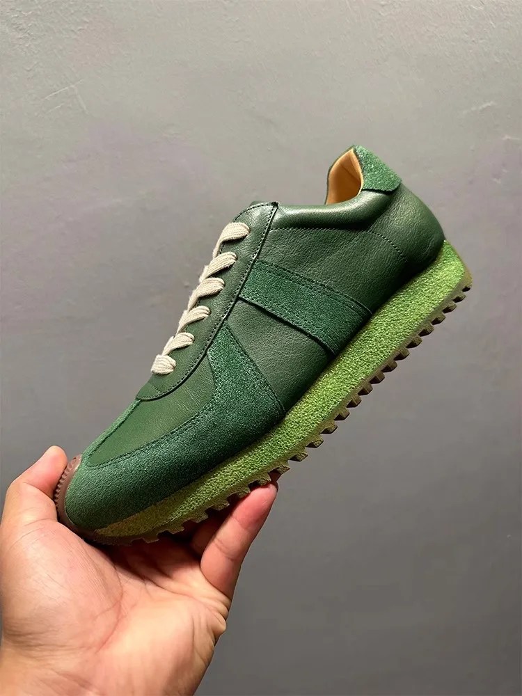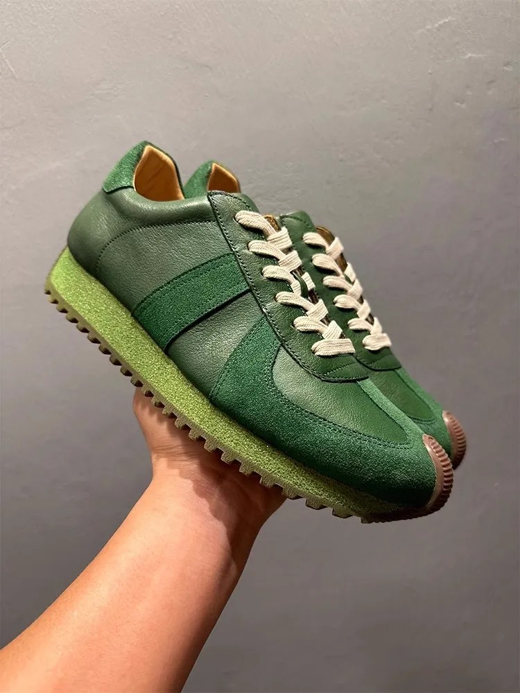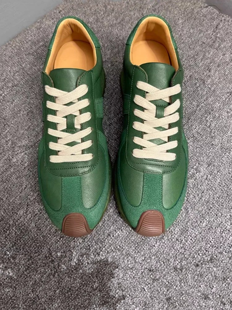 mens green leather sneakers, retro platform sneakers men, handmade leather shoes men, casual green sneakers men, unitypuremax sneakers, lace up leather sneakers, breathable leather shoes men, non slip platform sneakers, cow leather sneakers men, stylish casual shoes men