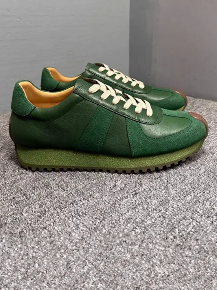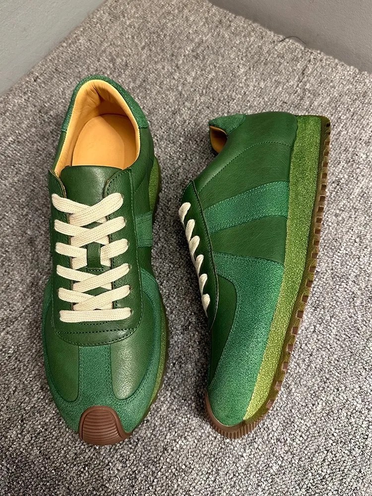 Men’s Green Leather Platform Sneakers Retro Casual Lace-Up Shoes | UNITYPUREMAX™