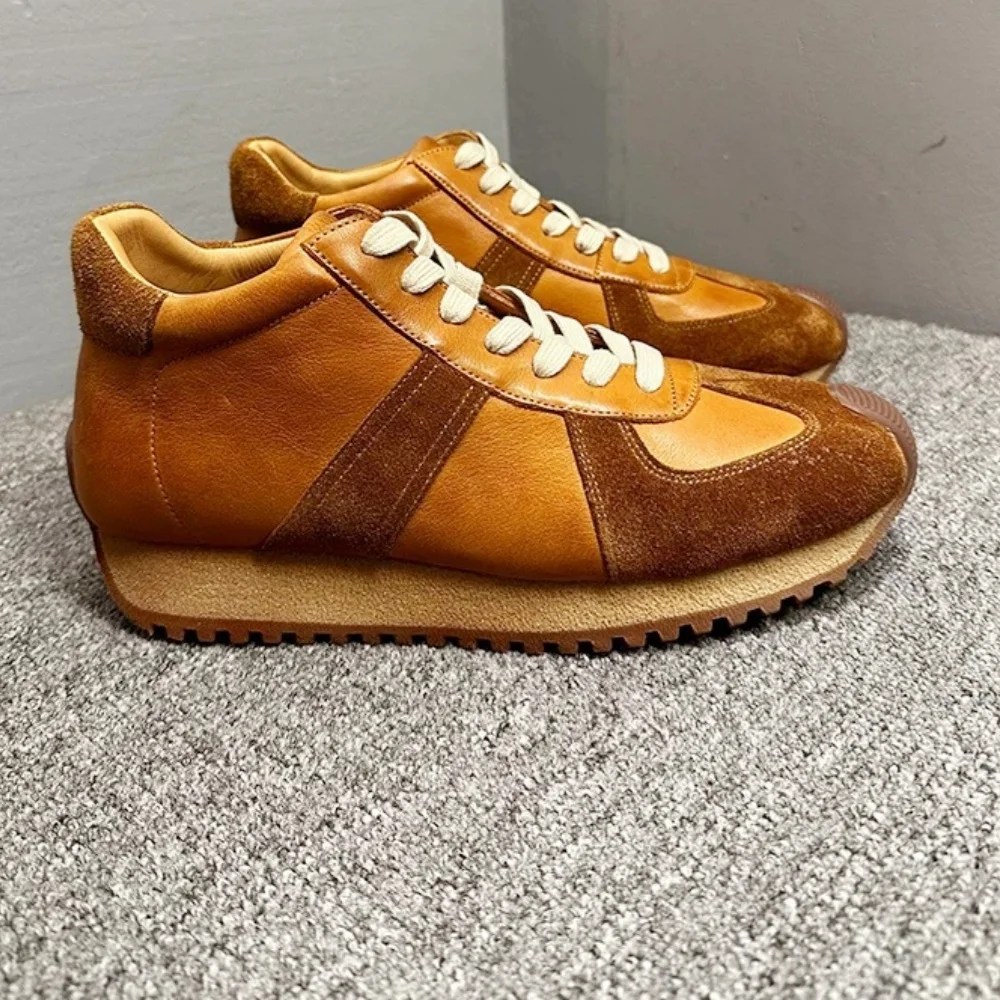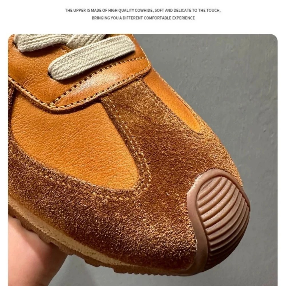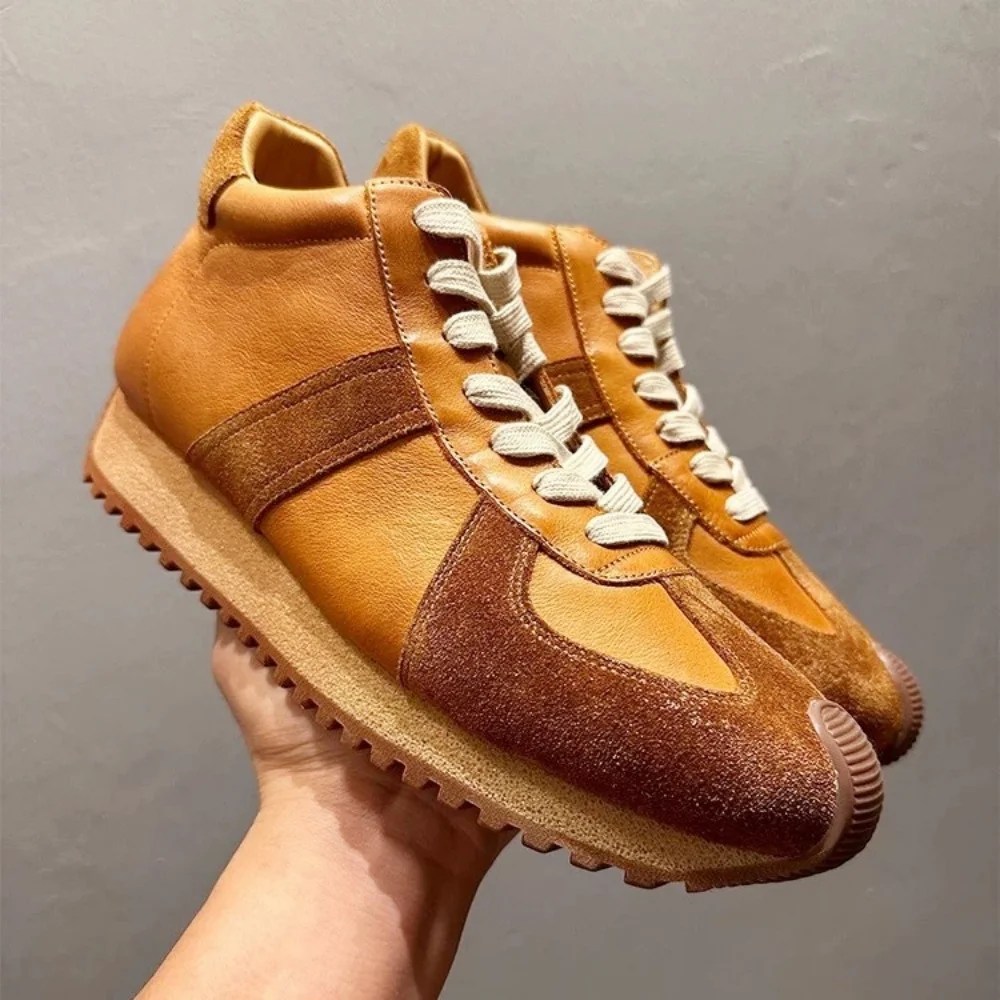 Premium Cowhide Leather Upper – soft, durable, and stylish with a patchwork retro design.